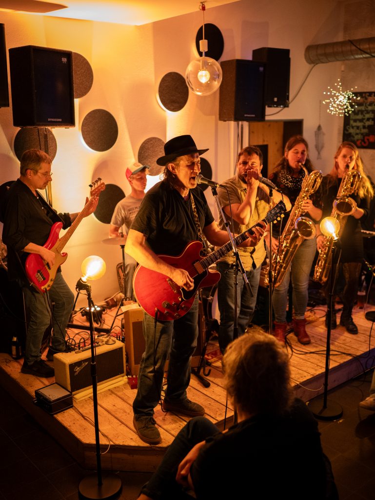 Max Kögel: Blues Harp und Gesang, Max Schöll: Gitarre und Gesang, Stefan Grund: Keyboard, Michi Memminger: Bass, Xaver Bürger: Schlagzeug; Pati Sebald, Sabine Bürger: Sax